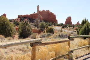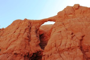 After our trek to Mossy Cave, we drove east on Hwy 12 to Kodachrome Park.  We did the short hike to Shakespeare Arch and the Grand Prarie Trail which takes you right up to the rock wall.
